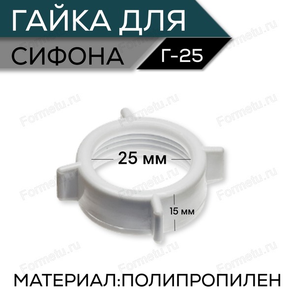 Пластиковая гайка 25 мм. Используется на переливах сифонов для кухни и ванны с гофрированным шлангом 25 мм.
