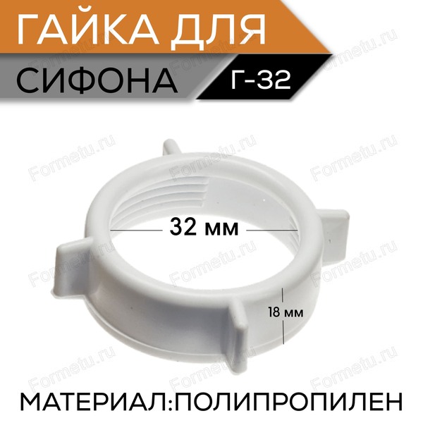 Пластиковая гайка 32. Используется для ремонта сифонов и гибких труб для умывальника и писсуара, на выпуск и патрубок диаметром 32 мм и резьбой 1 1/4".