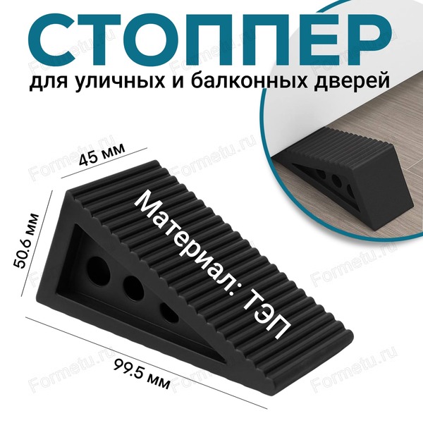 Стопор для двери устанавливается на пол под дверью, не позволяя ей захлопнуться. Ограничитель защищает детей от возможных травм при резком закрывании двери. Усиленный стопор для уличных и балконных дверей и окон. Размеры стопора 10х4,5х5,1 см.
