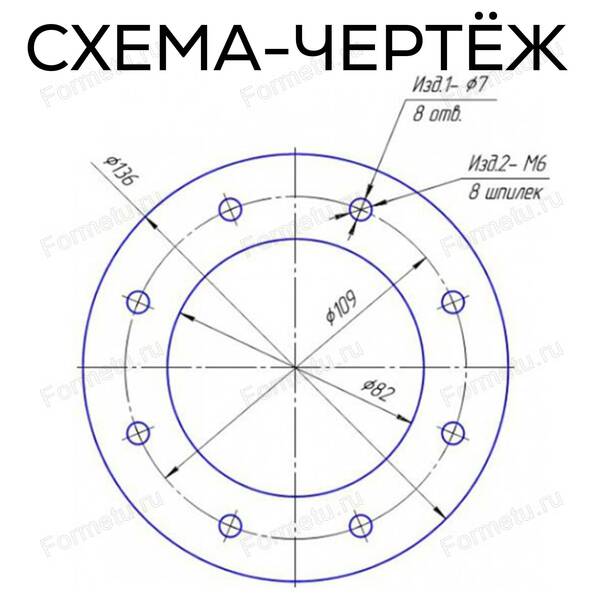 Виды фланцев для муфт ГВР 50/57: Кольцо металлическое с отверстиями Кольцо пластиковое с отверстиями Кольцо металлическое с приваренными шпильками Кольцо нержавеющее с отверстиями (этот товар)