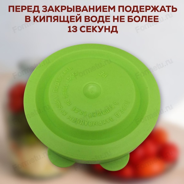 Способ применения: Перед использованием полиэтиленовые крышки промыть моющим средством. Перед закрыванием крышку опустить в горячую воду на 13 секунд.