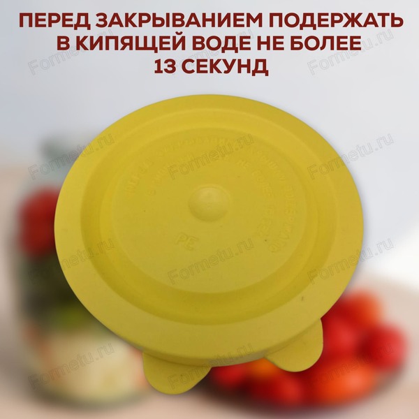 Способ применения: Перед использованием полиэтиленовые крышки промыть моющим средством. Перед закрыванием крышку опустить в горячую воду на 13 секунд.