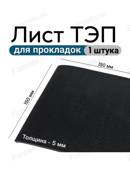 Описание Лист для прокладок ТЭП 150х150 мм толщина 5 мм, ЧЕРНЫЙ 1 штука