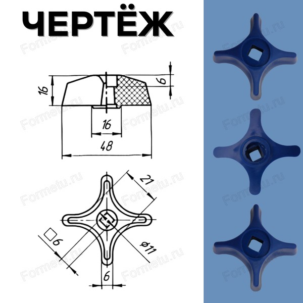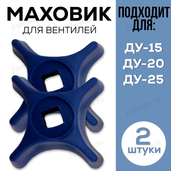 Маховики для смесителя подходят для вентильного крана с размером штока 6х6 мм. Для регулировки водного напора в кране, синий цвет.
