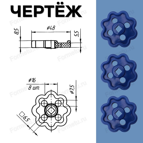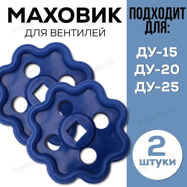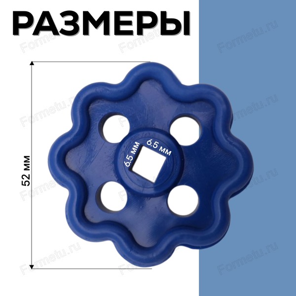 Маховики для смесителя подходят для вентильного крана с размером штока 6,5х6,5 мм. Для регулировки водного напора в кране, синий цвет.