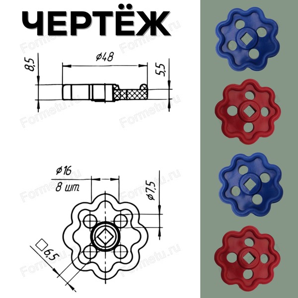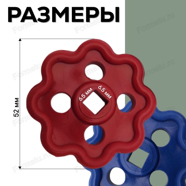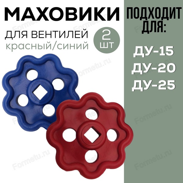 Маховики для смесителя подходят для вентильного крана с размером штока 6,5х6,5 мм. Для регулировки водного напора в кране, красный и синий цвет.