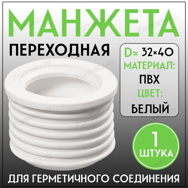 Манжета переходная D32х40 трехлепестковая для герметичного соединения сантехнического оборудования, например, сифонов, сливных шлангов стиральных и посудомоечных машин, полипропиленовых труб 32 мм с канализационными трубами из полипропилена 40 мм. Манжета обеспечит качественное соединение подключения и легко монтируется. Манжета канализационная блокирует запахи из канализации.