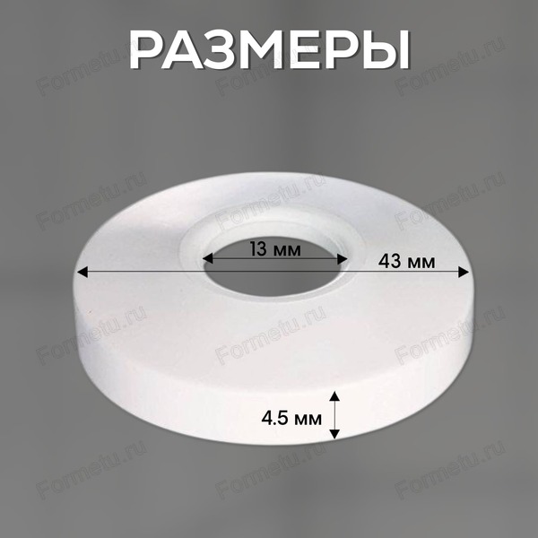 Круглый конусообразный отражатель сантехнический из полипропилена белого цвета. Декоративный отражатель скрывает не эстетичные отверстия под выводы водопровода, места соединения отвода сифона с канализацией в ванной комнате, используют при монтаже смесителя. Для труб диаметром 13 мм. Высота 4,5 мм, наружный диаметр 43 мм. Полипропилен – устойчив к воздействию влаги, образованию и распространению коррозии, стоек для бытовой химии, ему не страшна разная температура.