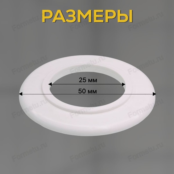 Круглый конусообразный отражатель сантехнический из полипропилена белого цвета. Декоративный отражатель скрывает не эстетичные отверстия под выводы водопровода, места соединения отвода сифона с канализацией в ванной комнате, используют при монтаже смесителя. Для труб диаметром 25 мм. Высота 6 мм, наружный диаметр 50 мм. Полипропилен – устойчив к воздействию влаги, образованию и распространению коррозии, стоек для бытовой химии, ему не страшна разная температура.