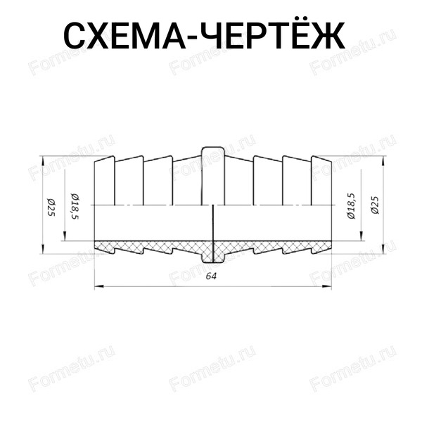 ПЕ-1х1 Переходник для поливочного шланга. Длина переходника 6,4 см.