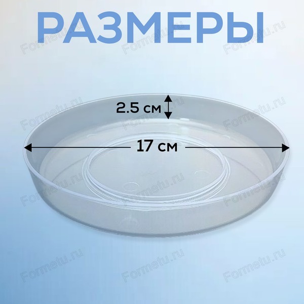 Поддон 17 см для горшка, размер дна 16 см, прозрачный.