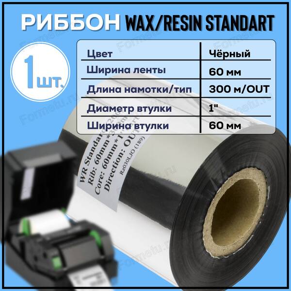 Характеристики Риббон Wax-Resin Standart 60 мм x 300 м